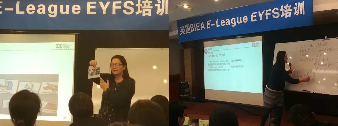 来自BIEA E-league教研总监Sharron Fogarty女士带领各位培训老师了解并学习了EYFS的重要知识点。Sharron女士不仅为每个重要知识点都精心准备了具有代表性的游戏,还针对老师们提出的各种EYFS落地难题和中英两国文化差异造成的教学争议给出了专业点评。