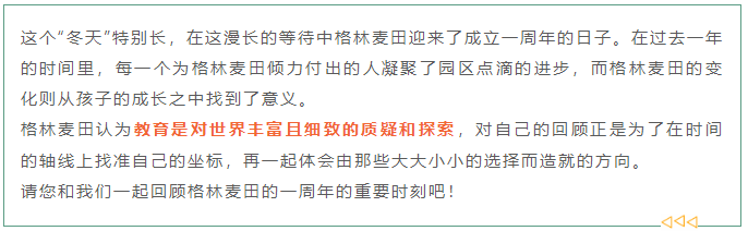 亲爱的孩子们,行动起来吧!将我们在没能见面的时间所收获的故事、经验、喜悦和1岁的格林麦田分享,一起期待我们即将到来的相聚!